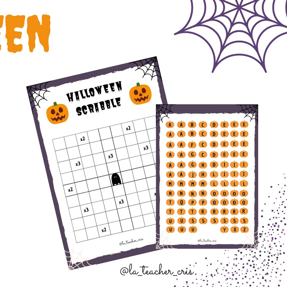 Juego basado en el Scrabble, pero con temática de Halloween. Contiene tablero y fichas.