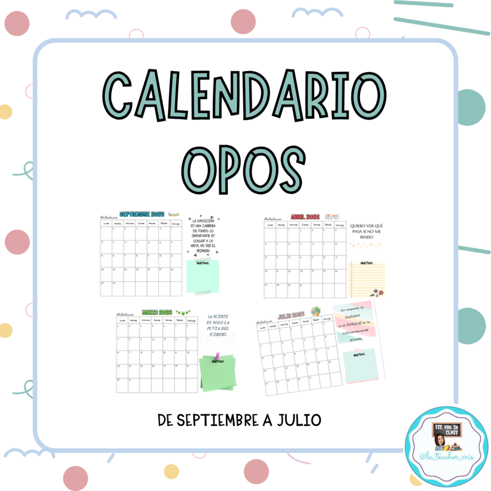 Calendario de septiembre 2025 a julio 2026 para organizar tu estudio de opos.